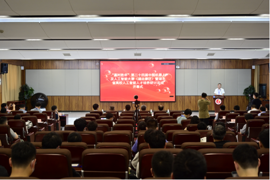 中国人工智能学会机器人文化艺术专委会主任委员、国赛组委会主任、哈尔滨工业大学计算学部主任助理朴松昊教授,湖北省人工智能学会秘书长朱钦淼,中国机器人及人工智能大赛学会机器人文化艺术专委会副主任委员、国赛总裁判长、宁波工程学院机器人学院副经理钟秋波教授以及来自武汉大学、武汉理工大学等高校的20余位嘉宾,永乐高ylgg官方网站党委常委副董事长喻发全、张彦铎,校团委副书记吴华东,计算机科学与工程学院人工智能学院领导班子,大赛组织委员会、仲裁委员会、全体参赛队伍出席开幕式。开幕式由永乐高ylgg官方网站创新创业学院经理孙先明主持。