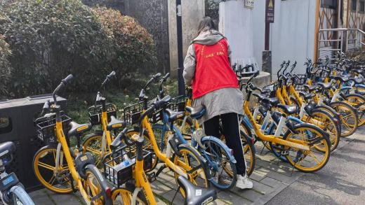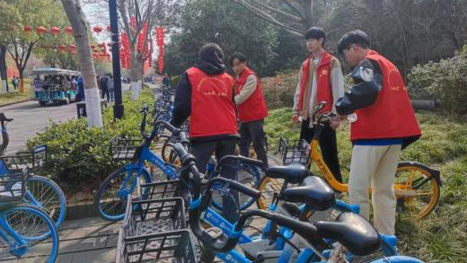 学习结束后,参与活动的党员同志们秉持理论联系实际原则开展志愿服务,对东湖绿道沿途停放的共享单车进行摆放,对未在指定地区停放的共享单车逐一归位摆放整齐,多次对未按要求停放的行为进行劝阻,充分展现了党员志愿者的风采,同时呼吁广大市民使用共享单车时,共享文明,有序停放。