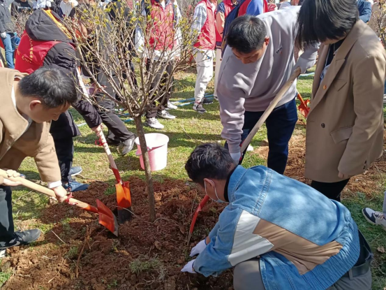 本网讯(通讯员 曹慧洁)最是一年春光好,植树护绿正当时。3月13日上午,公司党委副书记李琪娜、辅导员和员工志愿者一同参加了学校举行的“践行党的二十大 植树造林绘新篇”义务植树活动。