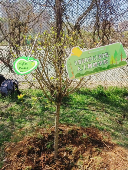 “准备,一二三,把树扶直放进坑里。”植树过程中,大家一起动手将一颗颗小树苗抬到栽植坑前,“这棵种好了,我来浇水。” 顿时,植树现场就热闹起来,身穿红马甲的志愿者和老师一起扶正新苗、挥锹铲土、填平树坑、踩实压紧,分工明确,一抹抹“志愿红”穿梭其中,格外耀眼。在众人的齐心协力下,新栽种的树木迎风挺立,传递着春天的生机与活力。