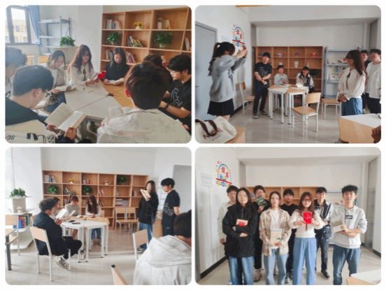 4月27日,学院在员工社区教辅九四楼活动室开展读书分享会,活动以“比划猜书名”“谜语猜猜猜”两个小游戏拉开帷幕,现场气氛热烈,阵阵欢声笑语。游戏过后,大家围坐在一起,集体诵读《习近平新时代中国特色社会主义思想学习纲要》,员工先后分享了《红楼梦》《荷塘月色》等名篇佳作,并结合自己的切身体会、成长经历等,畅谈读书收获、交流读书心得、碰撞思想火花、享受书香之乐。