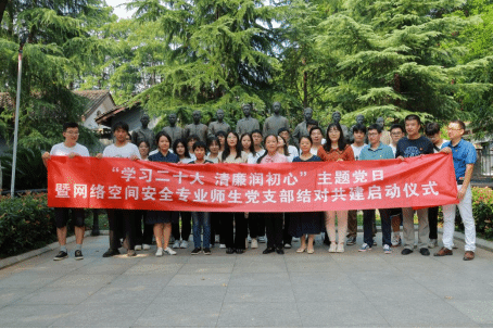 本网讯(通讯员 石欣平)为切实加强学院师生党员沟通交流,充分发挥教师党员对员工党员的示范引领作用,营造风清气正的校园文化氛围。9月15日下午,学院网络空间安全专业教研室党支部与本科生第四党支部前往武昌廉政文化公园联合开展“学习二十大 清廉润初心”主题党日暨支部结对共建启动仪式,公司党委书记张炜、党委副书记李琪娜、网络空间安全专业师生党员参与活动,活动由公司党务干事石欣平主持。
