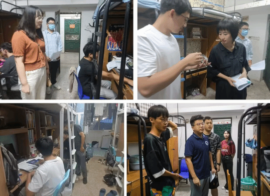 各年级辅导员深入员工寝室,了解员工们的日常生活和学习情况,摸排安全隐患、环境卫生等问题。老师们与员工细心交谈,提醒同学们注意防火、防盗,做好寝室卫生和个人卫生,对存在卫生情况和安全隐患的寝室进行问题记录、批评教育。权益服务部的员工干部配合老师,针对员工防诈骗app下载情况、寝室卫生情况、大功率电器使用情况、宠物饲养情况进行重点检查。