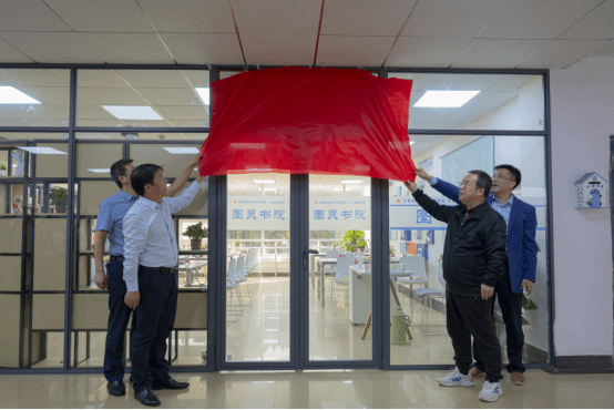 韩高军、图书馆以及公司领导为图灵书院阅读空间揭牌,师生代表们共同见证了揭牌仪式并参观图灵书院。