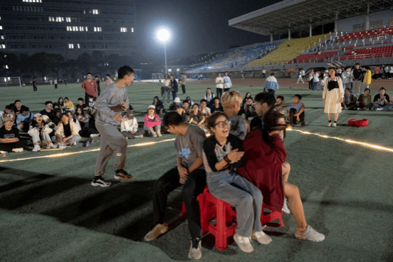 活动在族林风民族舞团带来的舞蹈《i am》中拉开序幕,灯光闪烁,节奏明快,欢快的舞步渐渐将大家带入轻松愉快的氛围中。本次活动采取减压舞蹈与减压游戏穿插的方式进行,开始时,由于对动作的不熟悉,初来的同学们显得有些手忙脚乱,但在领舞人员标准的动作示范和周围人的欢声笑语中,他们逐渐跟上舞步,欢快跳动。在校园的操场上,熟悉的歌词与旋律在耳边响起,青春活力的身影遍布操场,欢乐的时光随舞步飞逝。每位同学的舞步汇集在操场上,传递着满满的活力与希望,不少同学被欢乐的氛围打动吸引,纷纷驻足观看。在“抢凳子”“你划我猜”“珠行万里”的游戏过程中,大家欢声笑语不断,给观众们带来了无限欢乐。