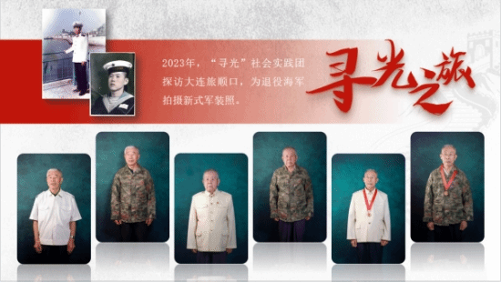 2023年暑期,“寻光”社会实践团探访大连旅顺口,联合旅顺口区团委、旅顺口区退役军人事务局,与曾在海军任职的三位退役老兵展开一场跨越时空的心灵对话,听老兵讲述峥嵘岁月和旅顺口历史,追寻先辈足迹,用相机让他们重拾军旅记忆,为三位退役老兵拍摄跨越70年的军装照,将回忆定格在他们最美好的瞬间。团队成员通过新媒体技术来宣传老兵故事,让更多青年人从老兵们爱党爱国的热情中找寻人生价值,汲取奋进力量,让红色记忆铭记心中,让红色精神赓续前行。作为学院“追寻”系列社会实践活动的一部分,去年暑期,“寻真”社会实践团走进咸宁市通山县车田村,为村里的金婚老人拍摄跨越时空的“婚纱照”,共为12对老人拍摄照片300余张,用不一样的视角来探寻车田村近几十年来发生的巨大变化和在乡村振兴战略实施下乡村改造的伟大成就,让老人感受到党和政府以及社会各界的关怀和帮助,推动形成爱国爱家、相亲相爱、向上向善、共建共享的社会主义家庭文明新风尚,让文化助力乡村振兴,让镜头探寻乡村变化。
