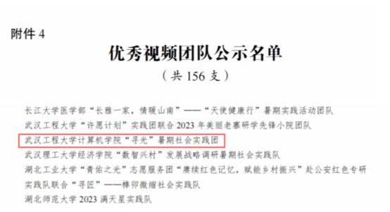 本网讯(通讯员 曹慧洁 杨琼)近日,由团中央青年发展部、中国青年报、中国青年网共同举办的2023年“镜头中的三下乡”征集活动遴选结果公示,计算机科学与工程学院(人工智能学院)“寻光”社会实践团荣获“优秀视频团队”称号,是继去年学院“寻真”社会实践团获得该项荣誉后,再次获此殊荣。