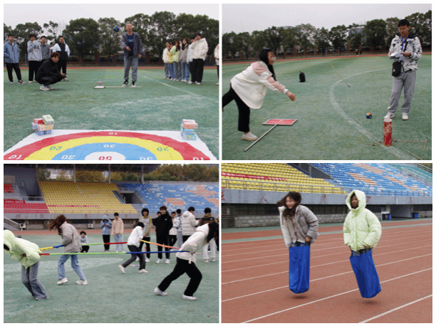 本次活动分区域开展转呼啦圈、踢毽子、沙包投掷、东南西北跑、跳长绳、投壶、袋鼠跳等趣味游戏,引导同学们在游戏玩乐中了解体育、参与运动、爱上运动。活动由动感的热身操和沙包投掷趣味游戏开场,活动气氛迅速升温,同学们在欢笑声中争相参与,投掷沙包的技艺各异,引得周围观众阵阵喝彩。随着游戏的进行,大家逐渐进入状态,参与游戏的兴趣愈发高涨,每个人都沉浸在运动的愉悦之中。