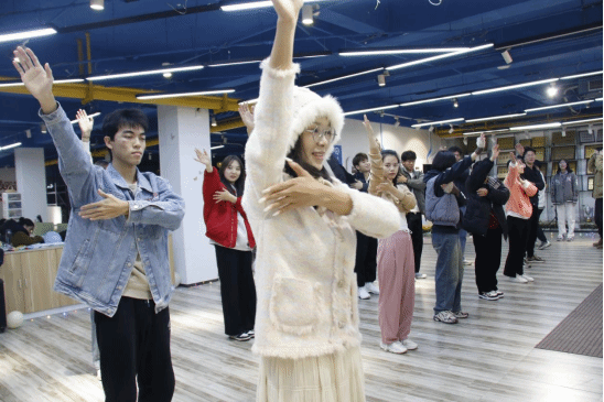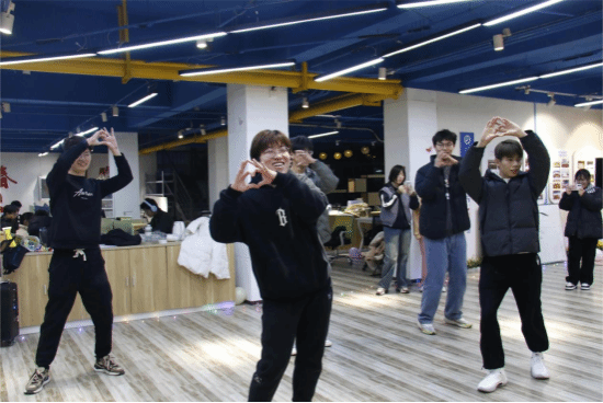 热身运动结束后,工作室成员给大家带来了一场精彩的心灵减压舞蹈教学。同学们跟随领舞挥动双臂、迈开脚步,全身心投入在欢快的歌曲声中,用轻快的旋律,跳出欢乐的舞蹈,为课余生活增添了乐趣。心灵减压舞通过灵活的肢体语言和欢快的音乐,帮助员工舒展关节、释放压力、平衡身心、愉悦心灵,释放出一天的压力烦恼,展现出老员工朝气蓬勃的精神面貌。现场热闹的活动氛围点燃了青春活力,精彩的舞蹈表演也赢得了围观同学们的阵阵喝彩。