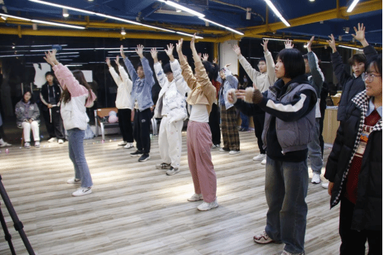 活动在“你划我猜”破冰小游戏中拉开序幕。在主持人的引导下,同学们逐渐掌握游戏规则和技巧,互动更加默契,每个人都沉浸在愉悦的氛围之中。游戏过后,工作室成员带领同学们在欢快的旋律中进行热身运动,伴随着简单的拉伸作和欢快的跳动,活动氛围瞬间升温,传递出满满的活力与热情,给参与者们带来了无限欢乐。